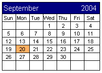 The second example Java Bean is a simple calendar showing one month and highlighting the current day: