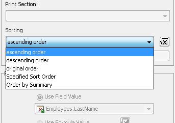 Note: if you try to add a formula which includes a summary function to the Sort Fields, an error message will be shown - because the summary information is calculated after the all data is sorted and filtered, it is impossible to use this as a Sort Field.